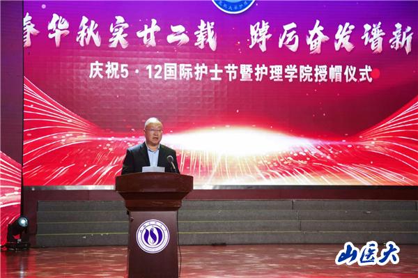 在第112个国际护士节来临之际,为弘扬南丁格尔精神,激励学生继承和发扬护理事业的光荣传统,5月8日上午9时,我校护理学院在中都校区大学生剧场举办“春华秋实廿二载·踔厉奋发谱新篇”庆祝5·12国际护士节暨授帽仪式。校党委书记王军出席活动并讲话,校党委副书记王宏伟、彭月兰,校党委常委、副校长赵文军、成晓龙,学校各职能部门负责人,护理学院全体老师及研究生导师代表出席活动。第43届国际南丁格尔奖章获得者姜小鹰教授,四川大学华西医学院护理学科主任李继平教授,国务院学位办第七届护理学科评议组成员、全国高等院校护理学教材评审委员会副主任委员段志光教授莅临授帽仪式。