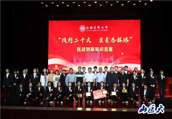本次“医战到底”知识竞赛历时一个多月,40位选手是从基础医学院2021级13个专业共计1600名选手中产生。大赛经历了初赛、半决赛、决赛三个赛程。决赛选手们通过必答题、抢答题、飞花令和风险题四种题型,争分夺秒、与观众互动,以医学生综合知识竞赛为主,围绕着积极学习医学知识展开活动,一道道专业的题目、一句句“回答正确,请加分。”表现了医学生对医学知识的掌握程度之深。医学与生活的感悟,引导学生关注各方面的医学知识,开阔了学生的视野,营造了相互学习,相互借鉴的学习环境,加深了学生对医学的兴趣。比赛现场气氛热烈,掌声雷动,高潮不断,给观众带来一场不同凡响的视觉盛宴,最终杨志若同学获得特等奖,李孜研、王婧同学获得一等奖,杜小翠、申睿斐同学获得二等奖,高惠圆、李雅妮、李贵、庹梦娇、刘瑞金同学获得三等奖。