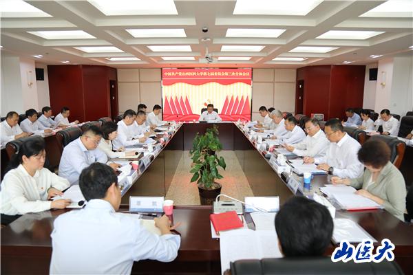 会议指出,当前,学校正处于高质量发展的上升期、关键期,在一些领域实现了历史性突破。我省高等教育战略叠加催生的新机遇,为学校发展创造了新机遇、新势能。全校上下要进一步提高政治站位、统一思想认识、凝聚非常之力、下足恒久之功,在推动学校高质量发展上展现更大担当作为。一是坚定不移推进治理体系与治理能力现代化建设,深入推进以目标绩效管理为核心的收入分配制度改革,加快推进医学科学院的改革,建立动态考核和准入机制,促进校级平台快速健康发展。二是坚定不移推进“双一流”建设行动,打造中西部地区高层次医学人才培养高地、高水平医学科学研究高地和高质量临床医疗服务高地。三是坚定不移深化教育教学改革,完善卓越人才培养体系,加强重点新型学院建设,打造“1+N”数字化医学研究生教育体系。四是坚定不移实施人才强校战略,以实施高等教育“百亿工程”为契机,刚柔并济集聚人才,做好本土院士培育工作,积极为人才放权松绑,走好人才引领发展之路。五是坚定不移抓好保障和改善民生,加快推进迎泽校区家属院规划改造,积极筹备“数字医谷”核心区及风雨操场地下停车场建设项目,攻坚克难为民办实事,继续写好主题教育“后半篇文章”。