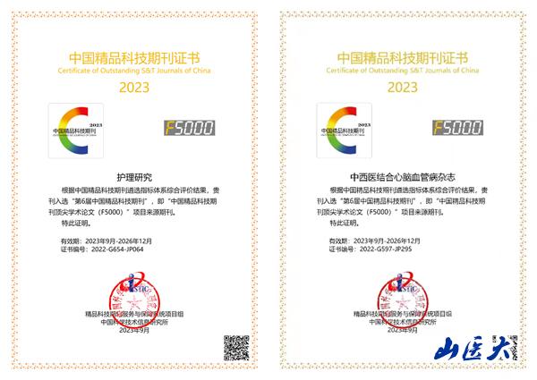 喜讯!我校第一医院主办的《护理研究》《中西医结合心脑血管病杂志》同时荣获“中国科技核心期刊”“第6届精品科技期刊”