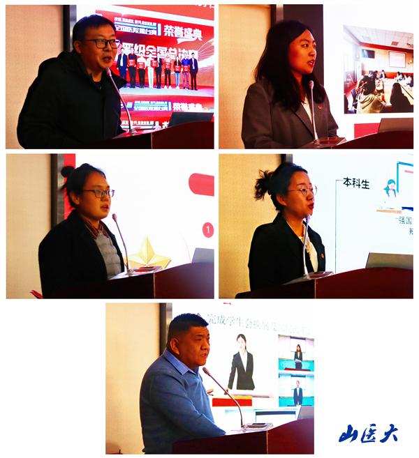 会上,第二临床医学院分团委书记张鹏、护理学院分团委书记淮盼盼、法医学院分团委书记杨蓉、人文社会科学学院团工作负责人田璐敏和体育教学部(运动康复系)分团委书记董雄分别围绕团员和青年主题教育、团组织自身建设和扩大组织覆盖情况、“三会两制一课”、组织团员青年开展社会实践、志愿服务情况、“一院一品”特色创新活动以及存在不足和改进方法依次进行了现场述职,其余基层团组织负责人以书面形式进行了述职。