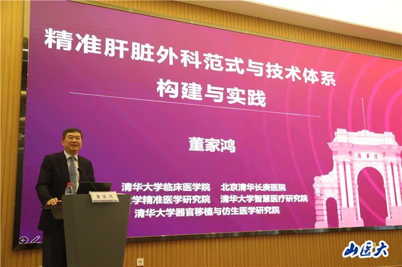 6月21日,我校特邀中国工程院院士、清华大学讲席教授、清华大学临床医学院院长、北京清华长庚医院院长董家鸿来我校作专题报告,报告在迎泽校区北U楼北侧二楼报告厅举行。校党委常委、副校长焦向英主持报告会。第一临床医学院(第一医院)党委书记徐钧,学校相关单位、部门负责人,师生医护员工代表共200余人参会。