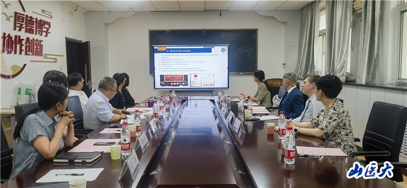 随后,举行了两校中外合作办学洽谈会。党委常委、副校长焦向英出席会议,教务部、研究生学院、国际教育学院、公共卫生学院、护理学院和康复医学等院系负责人参加座谈。焦向英介绍了学校在专业建设、科学研究、人才培养及国际化等方面的办学特色和工作亮点。他表示,这次实地到访,进一步加深了两校间的了解和互信,将凝聚合力推动两校合作办学落地落实。Robin Carey对合作过程中各相关学院团队积极、高效、细致的工作给予高度评价。他表示,两校强强联合,一定可以培养出更多适应新时代健康发展、国际化、高素质优秀医学人才。