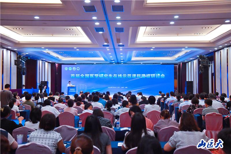 7月15日至16日,由全国医学专业学位研究生教育指导委员会、中国学位与研究生教育学会医药科工作委员会和医学“双一流”建设联盟主办,我校承办,学堂在线协办的首届全国医学研究生在线示范课程建设研讨会在太原举行。全国医学专业学位研究生教育指导委员会秘书长、中国学位与研究生教育学会副秘书长、医学“双一流”建设联盟理事会副理事长、北京大学医学部副主任段丽萍,省教育厅党组成员、副厅长李金碧,我校校长解军出席大会开幕式。开幕式由我校副校长张岩波主持。首批全国医学研究生在线示范课程负责人及团队成员,全国兄弟院校领导、专家及师生代表等400余人线上线下参会。