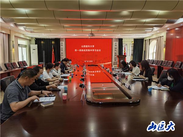 5月26日下午,我校统战部在迎泽校区第一会议室召开统一战线成员集中学习会议。校党委常委、统战部部长牛琪,第一医院、第二医院负责统战工作的同志,我校6个民主党派和2个统战团体负责人参加了本次集中学习会议。