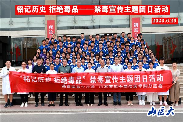 在第36个国际禁毒日来临之际,共青团晋中市委、榆次区团委和我校法医学院分团委联合开展了“铭记历史 拒绝毒品”禁毒宣传主题团日活动。