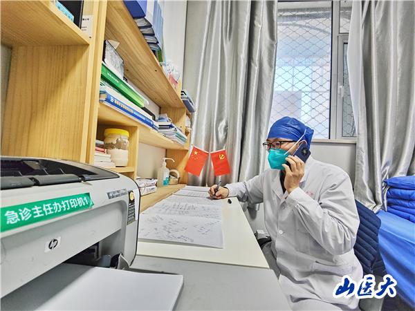 郭庚主任是在疫情日益发展的时候临危受命被任命为急诊医学中心主任的。自上任以来,他首先深入一线调研,在摸清实情的基础上,雷厉风行地制定了工作日报制度,每日安排专人定时针对挂号人数、重症患者比例、应收治科室及收治患者人数、已收治科室及收治患者人数等进行两次报告,同时建立急诊留观患者转归群,在群内与各科室主任密切联系,使留观患者能在第一时间向病房疏导,高效推动了工作进展。他想患者所想,急患者所急,忧患者所忧,每天工作14小时以上,唯恐辜负院领导的信任和患者的托付。在医护人员减员严重的情况下,郭庚主任带领全科人员,按照院党委提出的“不得拒诊任何一名患者,不能放弃任何一个生命”的要求,坚决做到危重症患者应收尽收,应治尽治。为了做好工作,他在自己被感染后也不敢休息一天,依然坚守一线连轴奋战,发着烧从早到晚不知停歇的在诊室、抢救室、观察室之间来回奔波,声音嘶哑了,还在不停地与各科室打电话协调急诊患者的住院事宜。在为患者奔波的同时,他还密切关注科室医护的身体状况,督促在岗职工做好防护,关心安慰阳性医护人员和家属。