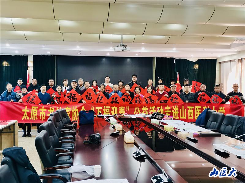 在中华民族传统节日春节即将到来之际,1月25日上午,中国毛体书法家协会副主席、我校原党委副书记、省工商局原局长刘增民,太原市书法协会主席袁筠等20余名书法家冒着严寒,带着暖暖的爱心走进我校迎泽校区,举办了一场“万福迎春”书写对联公益活动。