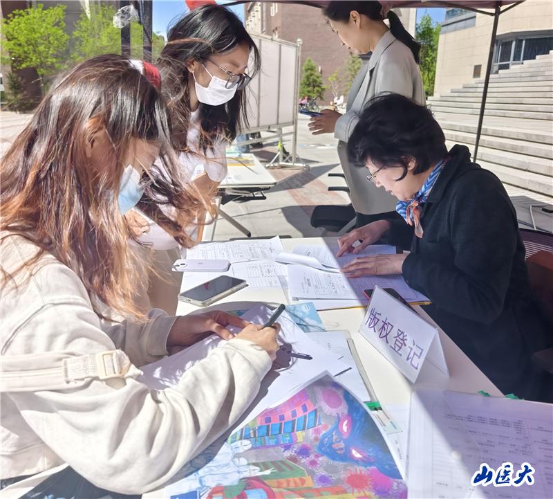 活动现场设置六大核心板块:倡议签名墙前,师生郑重签下《尊重知识·崇尚创新·保护产权》承诺书;知识产权科普展区通过图文并茂的形式以“基础—进阶—前沿”递进式结构,系统呈现知识产权全链条知识展板,吸引百余名师生驻足;“知识产权与人工智能”主题书展遴选80余册图书专著,供师生现场阅览;知识闯关与知产咨询区吸引百余名参与者,通过趣味竞赛普及产权法律知识,解答师生学术规范、专利申请等实务问题;线上服务推广和需求调研同步开展,收集有效问卷40余份,精准定位服务优化方向。活动同时联合太原市宣传委、中国知网开设版权登记绿色通道,专业人员提供“一对一”指导,助力我校19件富有医学特色的师生原创作品完成确权登记,涵盖摄影、文字、书法、美术、小视频等多个类别,为校园创新成果穿上“法治铠甲”。