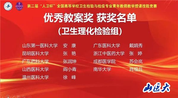 喜讯:我校公共卫生学院教师在第二届 “人卫杯”全国高等学校卫生检验与检疫专业青年教师教学授课竞赛中喜获佳绩