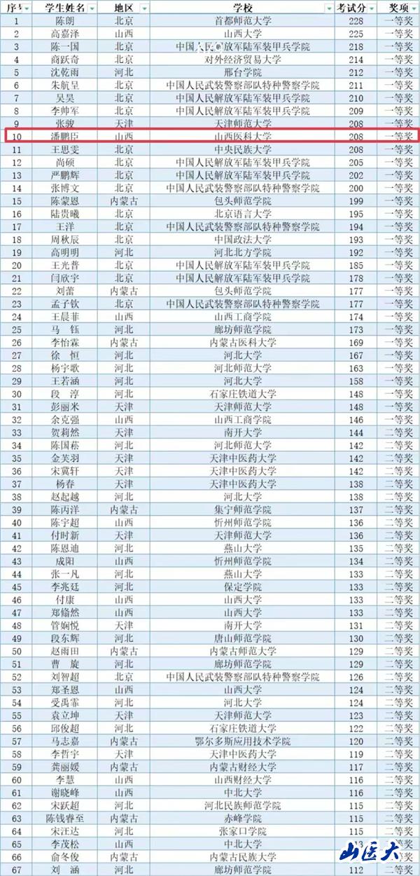 近日,2022年华北五省(市、自治区)大学生人文知识竞赛总决赛落下帷幕。经过校级选拔、省级复赛、决赛层层选拔,来自华北五省各赛区决赛的前20名选手进入总决赛,经过激烈竞争,我校护理学院2021级本科生潘鹏臣在总决赛中斩获一等奖。
