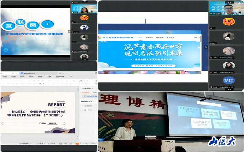 为激发我校学子的创新精神,提升创业能力,4月1日至5月31日,由教育部医学生创新创业教育课程虚拟教研室主办、我校创新创业学院承办的“四大赛解读宣讲”系列讲座圆满结束。此次系列讲座由我校教务部组织,联合24个教学单位,累计举办24场。讲座邀请医学创新创业管理微专业学员作为主讲人,主讲内容围绕“挑战杯”全国大学生课外学术科技作品竞赛、“挑战杯”中国大学生创业计划竞赛、中国国际“互联网+”大学生创新创业大赛以及职业生涯规划大赛四大赛事展开。创新创业学院微专业同学全程参与,累计吸引超3000人次参与腾讯会议,超2000人次参与线下会议。