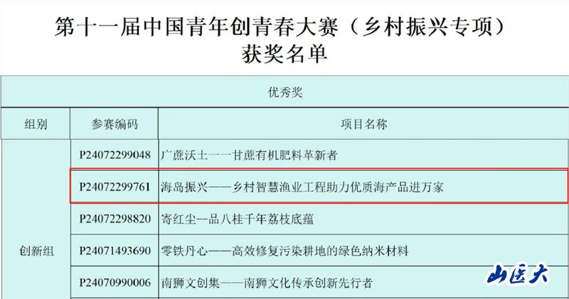 中国青年创青春大赛自2014年起已连续举办十一届,累计吸引近54万支创业团队、224万余名创业青年参加,为参赛青年提供了创业辅导、展示交流、资本对接、孵化落地、成果转化等支持,已经成为共青团服务青年创新创业的重要品牌。近年来,学校持续打造创新创业实践育人体系,激发山医学子的创新潜能。今后将加强创新创业成果转化服务,引领青年学子以更加优异的成绩为推进中国式现代化贡献青春力量。