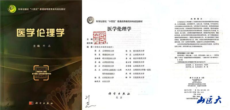 我校邓蕊教授主编的科学出版社“十四五”普通高等教育本科规划教材《医学伦理学》正式出版