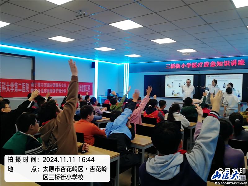 11月11日,我校第二医院急诊科走进三桥街小学,为六年级学生带来了一场生动而又实用的关于生命安全教育的急救知识科普。科普内容包括心肺复苏术(CPR)、自动体外除颤器(AED)的使用以及海姆立克急救法,旨在提升高年级学生在紧急情况下的急救能力。