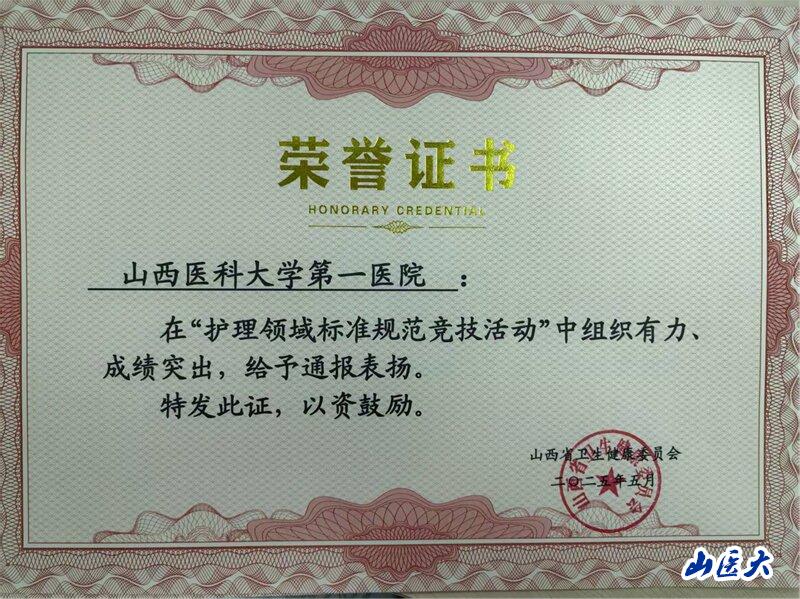 4月16日至19日,全省“护理领域标准规范竞技活动”总决赛在太原举行,比赛共设6个赛道,全省141家医疗机构共提交423个参赛案例,经专家评审,最终评选出卓越案例奖40个、示范案例奖86个、优秀案例奖164个。我校第一医院经过激烈角逐,6个赛道全部获奖,其中卓越案例奖4个,示范案例奖1个,优秀案例奖1个,同时获得团体优秀组织奖。