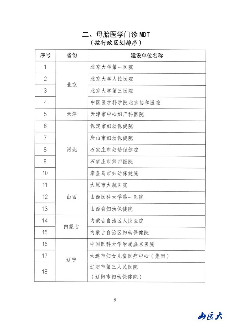 近日,国家卫生健康委发布了关于确定孕产妇多学科协作诊疗和产科亚专科建设单位的通知。经国家卫生健康委妇幼司审核,确定山西省7家机构为国家级孕产妇MDT建设单位,我校第一医院产科成为全省唯一一家同时荣获国家级高危孕产妇门诊MDT、母胎医学门诊MDT、危重孕产妇住院MDT的医疗单位。
