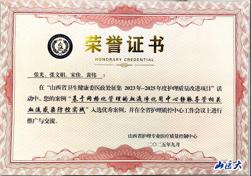 在山西省“2023-2025年度护理质量改进项目”评选中,我校附属第一医院护理团队提交的两项案例因创新性强、实用价值突出,双双获评“省级优秀案例”,并在全省护理质控中心工作会议上作经验推广,充分展现了第一医院在护理质量管理领域的引领示范作用。