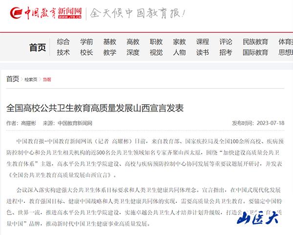 中国教育新闻网 | 全国高校公共卫生教育高质量发展山西宣言发表