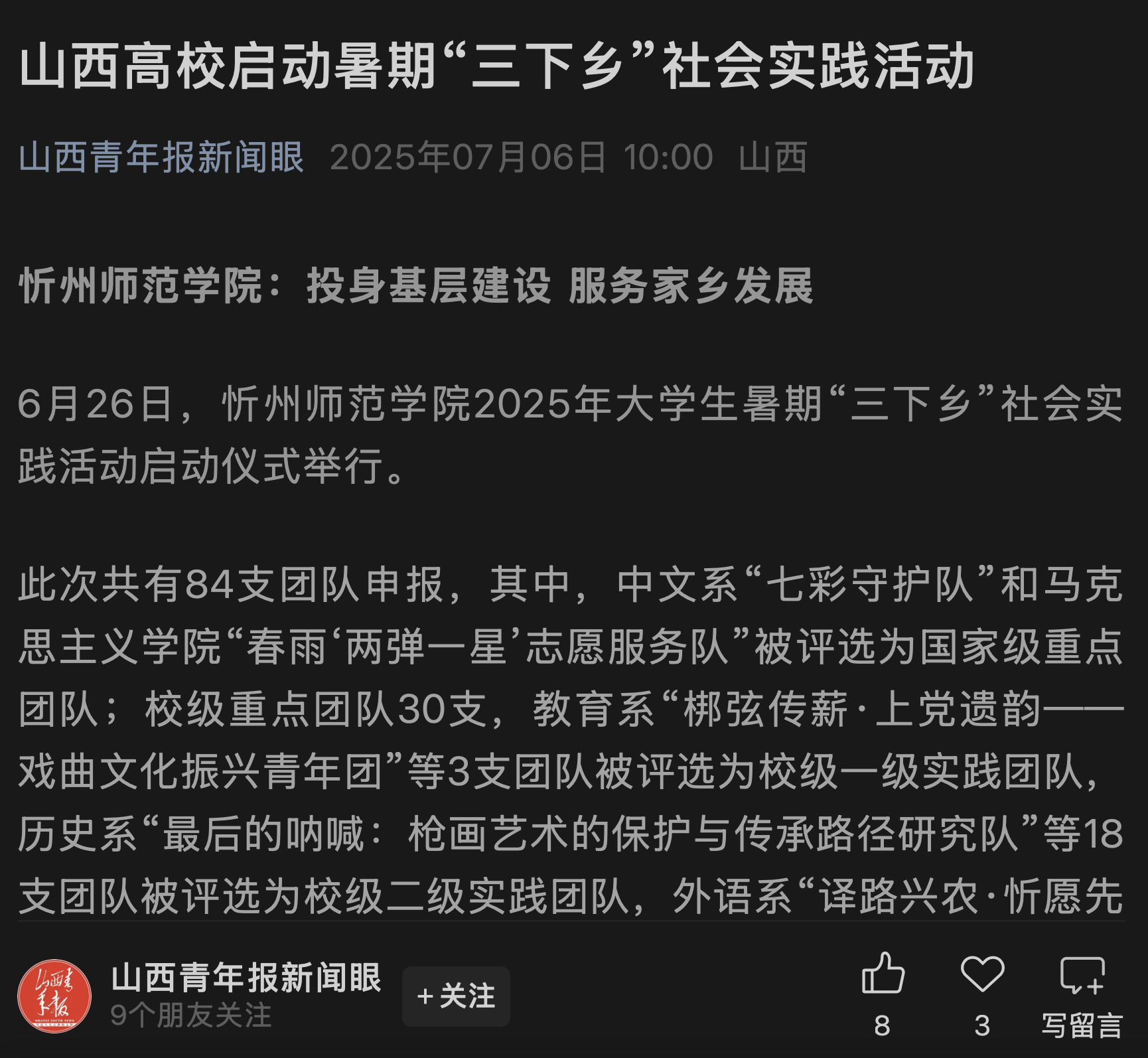 山西青年报 | 山西高校启动暑期“三下乡”社会实践活动