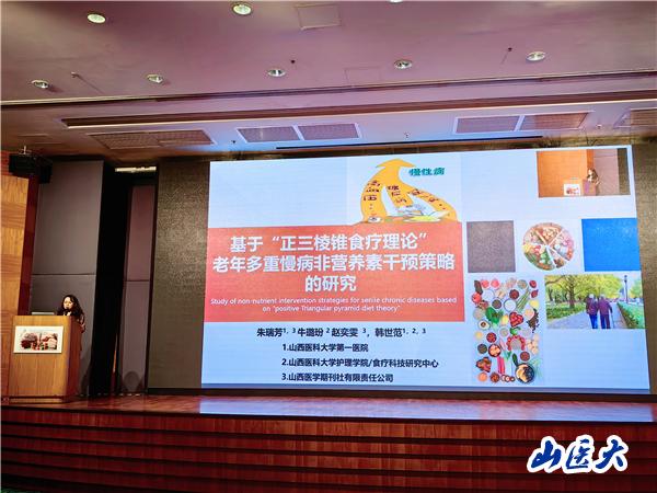 报告中,基于韩世范院长的“护士处方权”和“食疗护理”两个代表作领域,两位代表分别交流了“院校协同下我国内地未来APN进阶式处方培训课程方案的初步构建”“基于‘家庭护士食疗理论’的慢性病地域化健康膳食模式构建”“基于‘正三棱锥食疗理论’的老年多重慢病非营养素干预策略的研究”“富含皂苷、黄酮和生物碱三类有效成分的物质对自身免疫性疾病细胞因子的调节作用:一项基于动物实验的系统评价和Meta分析”“药食同源物质对非酒精性脂肪肝患者血脂、血糖及肝功能影响的系统评价和Meta分析”五项研究成果,系列成果内容获得线上、线下专家和同行们的一致好评,尤其是课题组创新性构建的“三棱锥家庭护士理论模型”,引来全场聚焦,得到与会者的广泛关注。