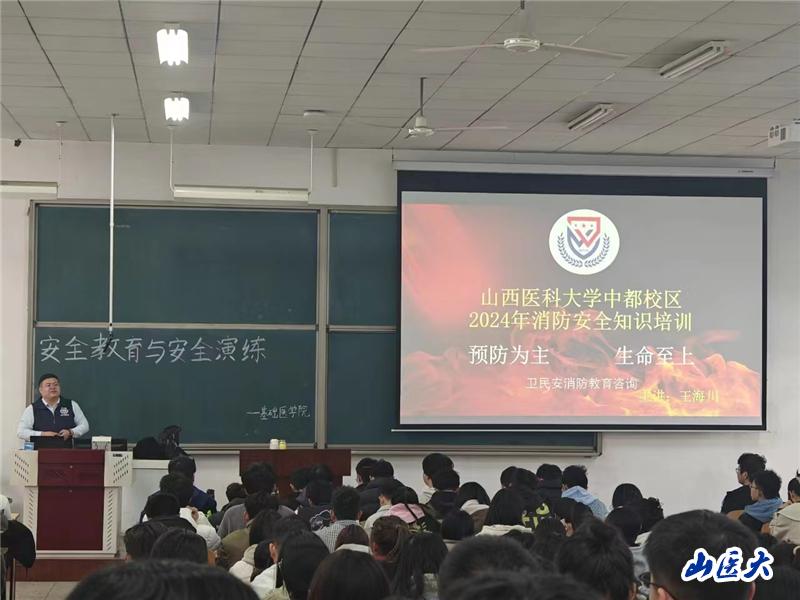 为了加强校园消防安全教育,提高师生的消防安全意识和自防自救能力,基础医学院在学校武装保卫部的指导下,于3月6日1下午对2023级临床医学(五年制)举办消防安全知识讲座。本次活动旨在让消防安全知识深入人心,营造出“关注消防、安全至上”的浓厚氛围。本次活动邀请卫民安消防教育咨询的王海川老师进行宣讲,思想政治辅导员孙超主持。