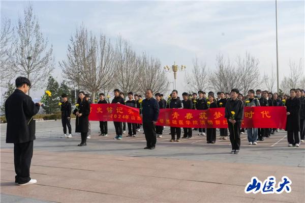 清明前夕,为弘扬爱国主义精神,开展革命传统教育,基础医学院在晋中烈士陵园举行主题为“历史铭记英烈志,青春筑梦新时代”的清明祭扫仪式。基础医学院党委书记王卓、副书记刘霞、思想政治辅导员、学生党员、本硕博优秀学生代表100余人参加了活动。