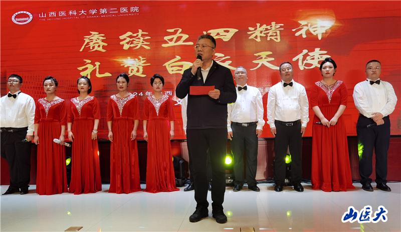 为弘扬五四精神,迎接第113个国际护士节,5月7日下午,我校第二医院西院区在多功能厅举行“赓续五四精神 礼赞白衣天使”文艺汇演。第二医院党委书记成晓龙、副院长牛金亮和院本部相关职能部门负责人受邀出席活动。