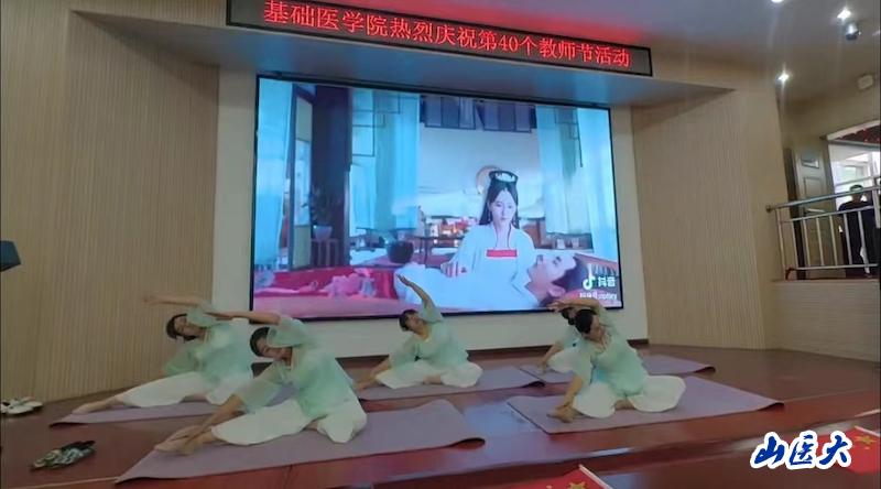 “饮其流者怀其源,学其成时念吾师。”《每当走过老师的窗前》序曲悠扬,生物制药和基础医学专业学生向老师们真诚献唱,为老师们献上了节日的鲜花和祝福;各教研室、实验室、科研团队选送的23个节目逐一展示,合唱、独唱、舞蹈、瑜伽、诗歌朗诵等形式多样,大家热情参与,纷纷登台,表演精彩纷呈,活动在《明天会更好》的歌声中落下帷幕,全院教师在欢欣轻松的氛围中度过了一个温馨感动的教师节。