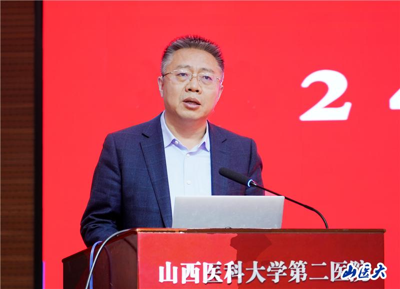 成晓龙对大会述职的中层干部和党支部书记述职发言情况进行了点评。他充分肯定了全院中层干部和党支部书记一年来在医教研管和基层党建等工作中取得的优异成绩和作出的卓越贡献,并深入剖析了目前医院建设发展过程中存在的问题和短板,明确了新一年度的努力方向。他指出,2025年是“十四五”规划的收官之年,是贯彻落实党的二十届三中全会精神、全面深化改革的重要一年,也是医院的“内涵建设年”。广大中层干部和党支部书记作为一线科室和基层党组织带头人,要坚持把讲政治作为第一遵循,努力做政治过硬、本领高强、作风优良、纪律严明的干部,不折不扣地贯彻落实好院党委的决策部署;要主动作为、奋发有为、担当善为,始终保持干事创业的激情和蓬勃向上的精气神;要坚持问题导向和目标导向,对标先进一流,以奋进的姿态、务实的作风,扬优势、找差距、补短板,不断提升工作质量和水平;要严守党纪“底线”,严守法律“红线”,严守道德“高线”,清白做人、干净做事。他勉励全院中层干部和党支部书记,要进一步统一思想、振奋精神、凝聚合力,以更加饱满的热情、更加务实的作风、更加拼搏的干劲,为第二医院高质量发展不懈奋进。