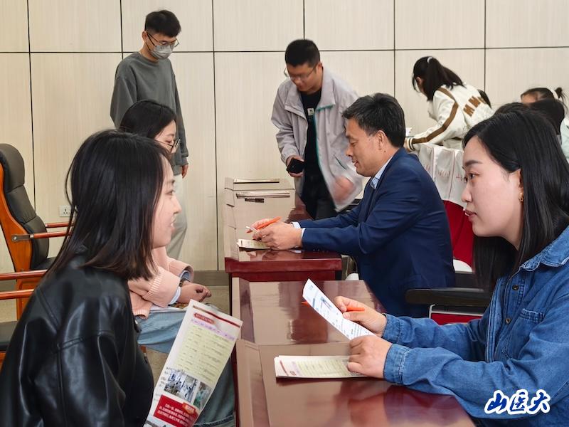 在招聘会宣讲过程中,华润双鹤普药事业部的招聘负责人就公司背景、业务范围、人才培养计划以及岗位需求进行了详细的介绍。互动环节,同学们积极提问,围绕薪酬待遇、工作环境、职业发展路径等问题与招聘负责人展开了深入交流。招聘负责人耐心细致地解答了同学们的疑问,使同学们对华润双鹤普药事业部和相关岗位有了更全面、更深入的了解。